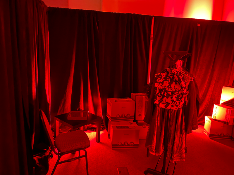 As lighting director, I had to translate design drawings made in Rhino into a real, fully fledged environment with props and lighting, and make sure the environment was safe for crew and guests as well as delivered on the desired ambience for the room. The images below show the concept art translated to the physical escape room, creatively using the resources we had available